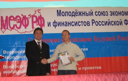 Еще одна научная работа студента В.Ю. Чистюхина «Перспективы развития предпринимательской деятельности в России», также участвовавшая в Одиннадцатой Всероссийской Олимпиаде развития народного хозяйства России, удостоена Диплома за методологический подход в научной работе в номинации «Развитие предпринимательства в России» – научный руководитель: канд. экон. наук, профессор кафедры экономики и организации производства В.В. Выборнова.