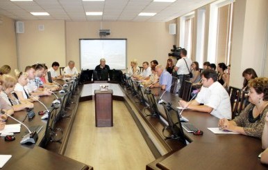 В заседании принимали участие д.э.н., профессор, заместитель главы администрации по экономическому развитию Гончарова Л.Н., начальник управления экономического развития и инвестиций Русинов И.Н., начальник отдела экономического анализа и прогнозирования Финьков М.В., д.э.н., профессор, директор ИЭМ Дорошенко Ю.А., к.э.н., доцент кафедры экономики и организации производства к.э.н. Чижова С.Ф., д.э.н., профессор кафедры стратегического управления Аркатов А.Я, преподаватели и студенты ИЭМ.
