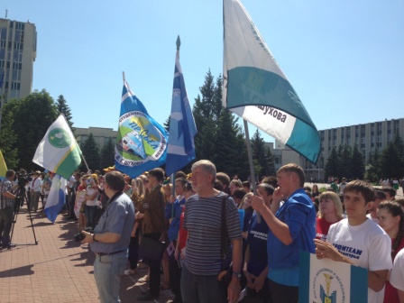На открытой площадке Студенческого дворца культуры БГТУ им. В.Г. Шухова состоялся митинг, посвященный торжественному открытию третьего трудового семестра студенческих строительных отрядов Белгородской области.
