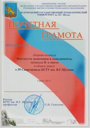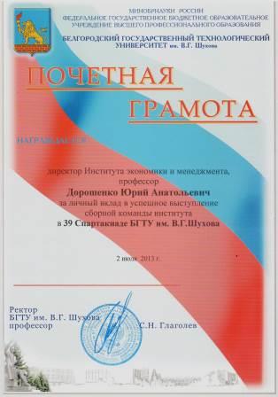 в 39 Спартакиаде БГТУ им. В.Г. Шухова и директора ИЭМ профессора Дорошенко Ю.А.