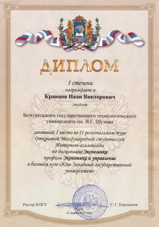Поздравляем членов клуба "ECONOMUS" (кафедра теории и методологии науки) с победой в региональном туре Международной интернет-олимпиады по экономике, проходившем в г. Курске 21 марта 2014 г.: