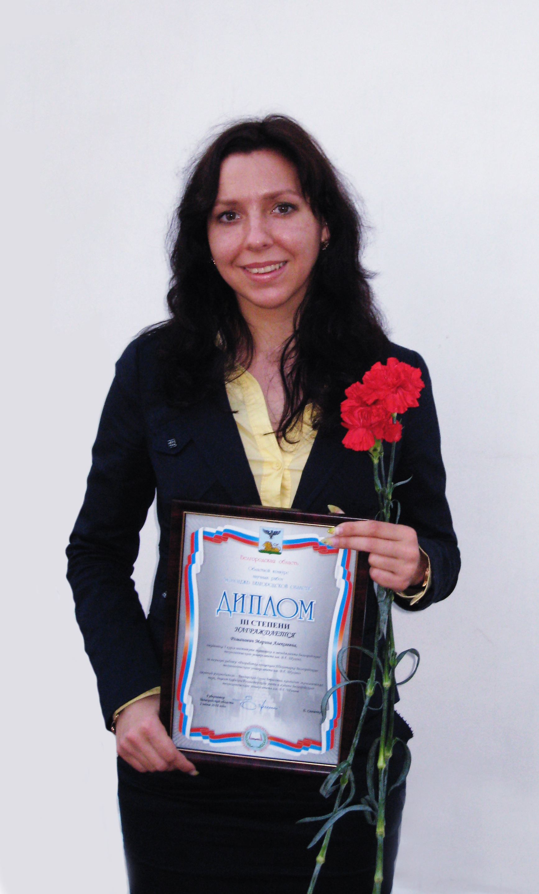 Хотелось бы поздравить с вручением почетной грамоты студенту 2 курса Крекшину Юлию за работу «Проблемы формирования рыночно-ориентированной инфраструктуры научно-технической инновационной деятельности в Белгородской области и молодежь». Научный руководитель к.э.н., профессор Одарченко Анатолий Васильевич.