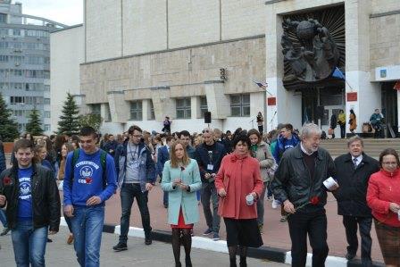 Торжественный митинг прошел в 11:00 на сценической площадке у входа в Студенческий Дворец Культуры. Пришедшие гости, преподаватели, студенты поздравили наш институт с праздником.