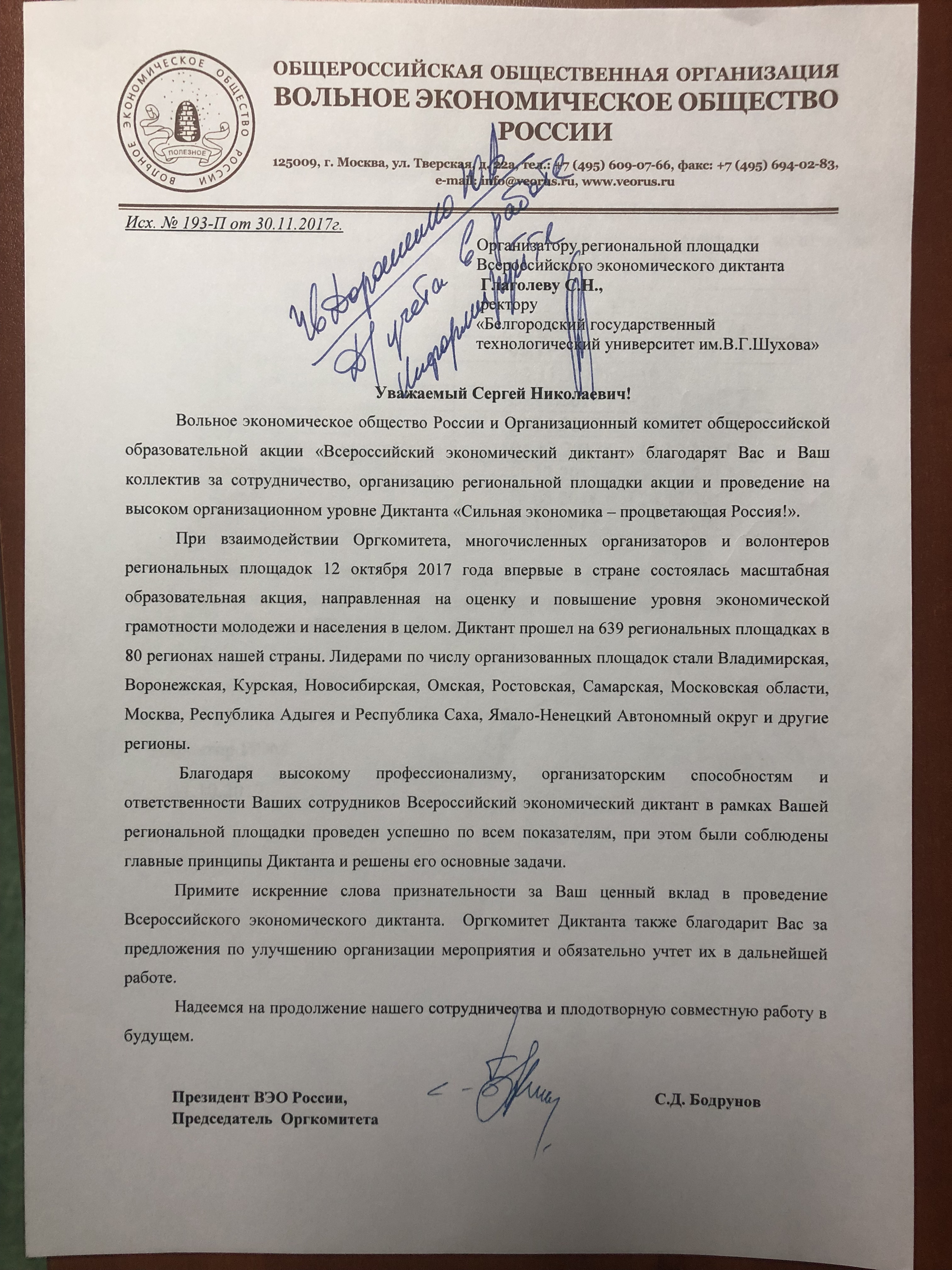 12 октября на базе БГТУ им. В.Г. Шухова была проведена общероссийская образовательная акция «Всероссийский экономический диктант».