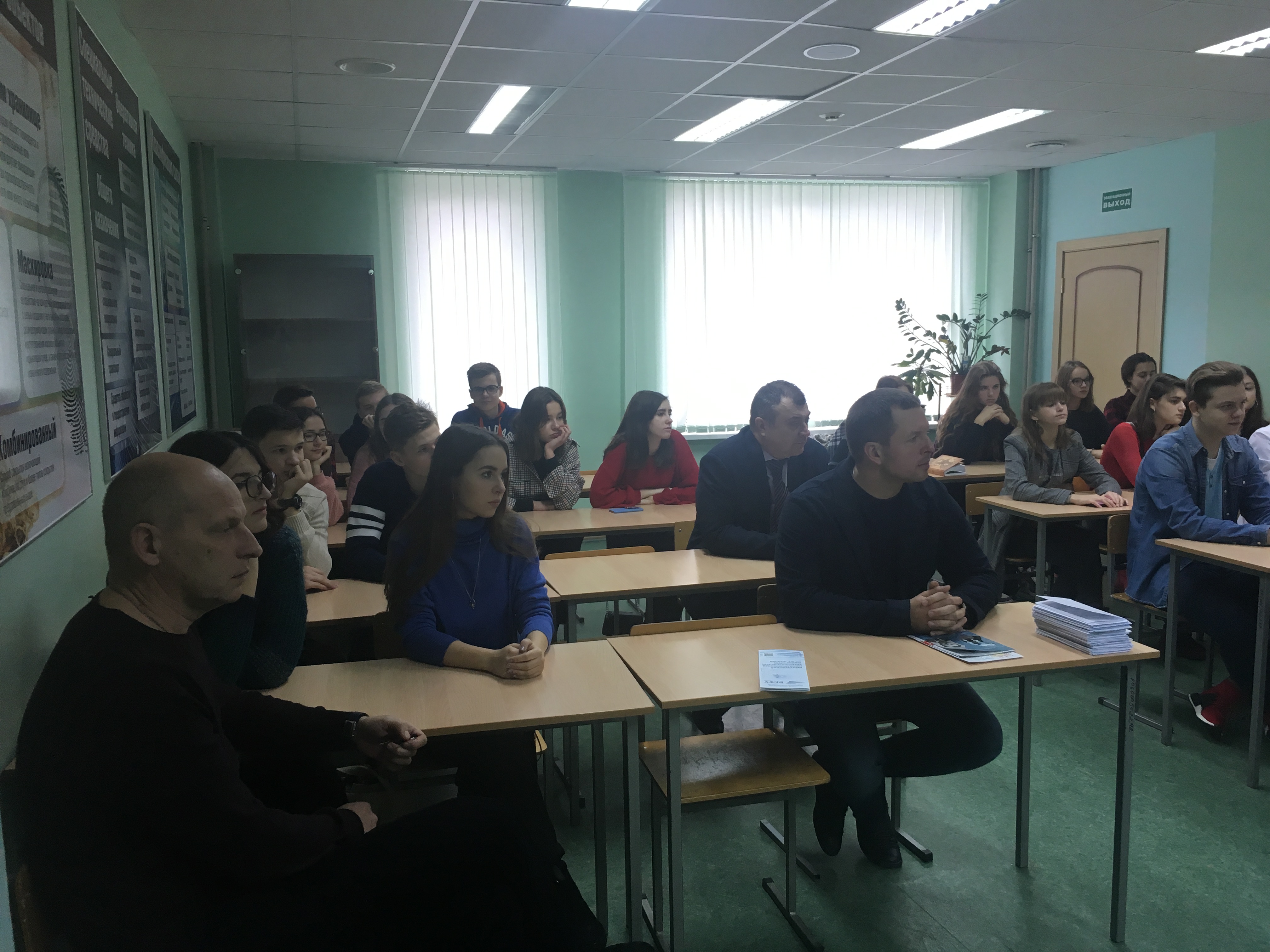 В ходе экскурсии по университету школьники 10 классов «Шуховского лицея» г. Белгорода посетили специализированные аудитории кафедры стратегического управления и лично пообщались с директором института Дорошенко Юрием Анатольевичем.