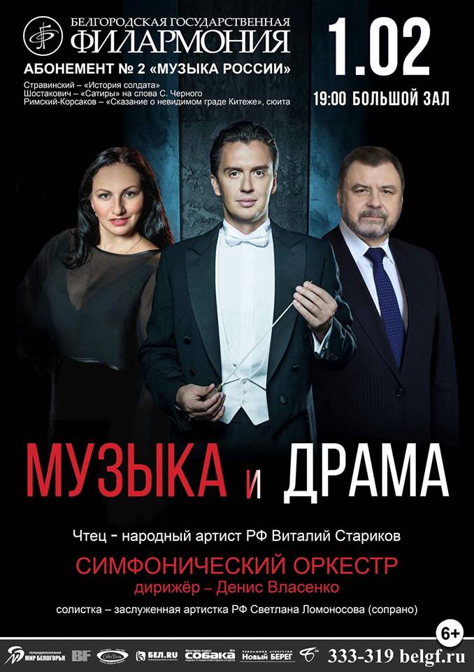 Приглашаем Вас посетить концерт симфонического оркестра в Белгородской государственной филармонии абонемент №2 «Музыка России» Музыка и драма. Который состоится 1 февраля в 19:00 в Большом зале филармонии.