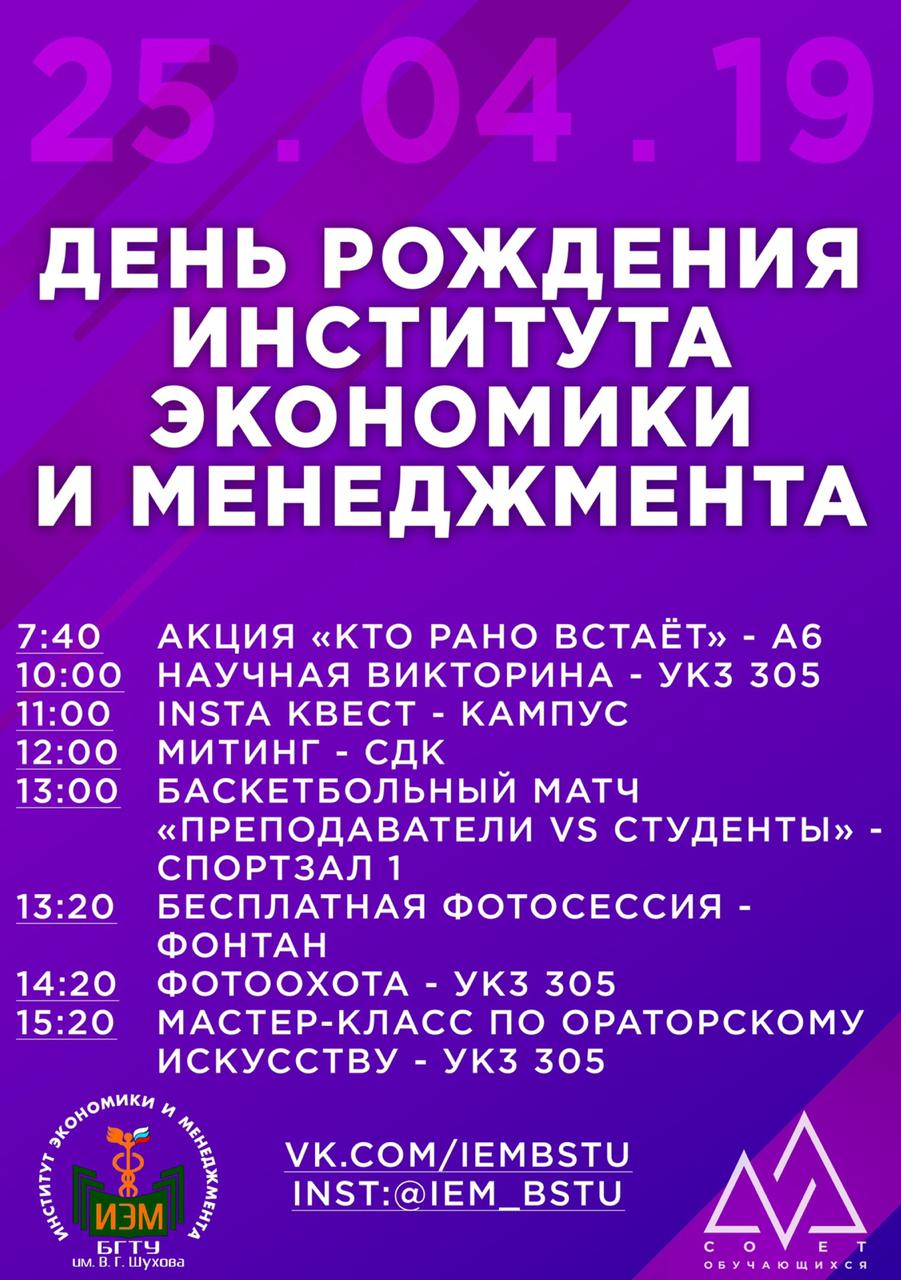 25 апреля состоится праздник посвящённый Дню Рождения Института экономики и менеджмента!