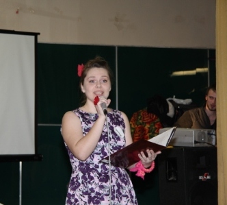 Бурными овациями зал отметил визитную карточку Шевченко Марии. Девушка подготовила стихотворение об институте экономики и менеджмента и о своих преподавателях. А еще Мария замечательно исполнила песню в своем творческом номере.
