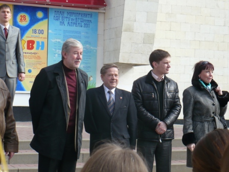 Начало празднествам положил торжественный митинг у стен УКЦ. Директор института, Юрий Анатольевич Дорошенко, вместе с представителями всех кафедр ИЭМ сердечно поприветствовал всех собравшихся, подвел итоги прошедшего года и пожелал студентам самого важного – удачной сдачи предстоящей летней сессии. После выступления талантливых ребят из студенческой самодеятельности делегация экономистов поучаствовала в традиционном возложении цветов к памятнику генералу Н.Ф. Ватутина. В преддверии дня Великой Победы мы считаем своим прямым долгом год из года отдавать дань глубокого уважения солдатам Великой Отечественной войны.