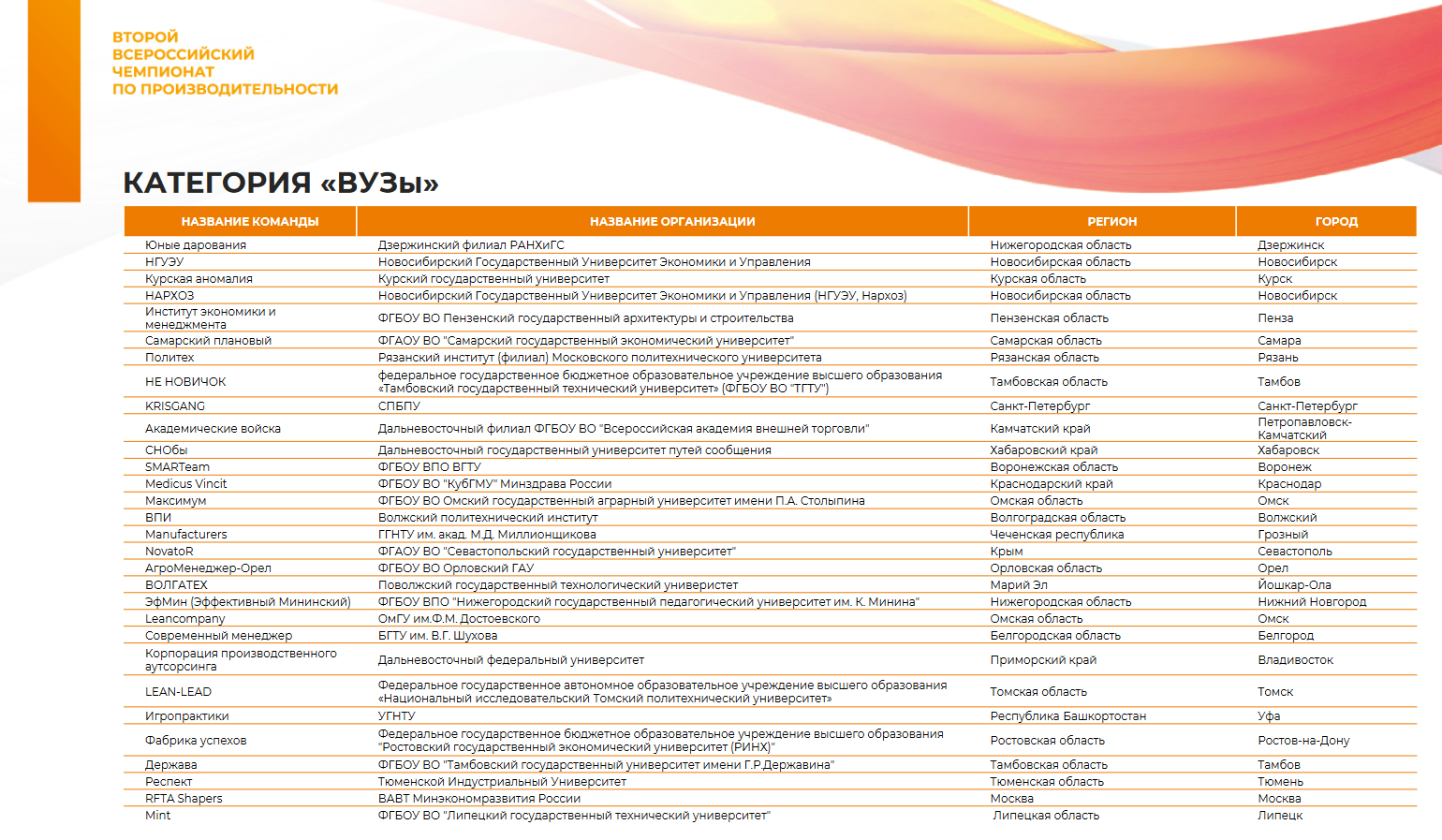Первый этап чемпионата объединил 70 предприятий, 30 вузов, 14 региональных центров компетенций и 6 региональных органов власти. По итогам соревнований в категории «Вуз» финалистами стали 6 команд среди которых и БГТУ им. В.Г. Шухова.