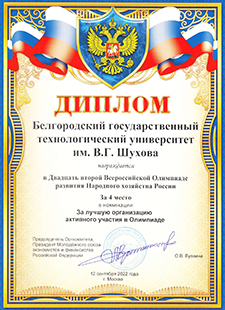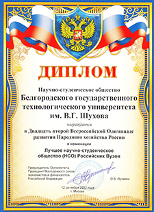 - СНО БГТУ им. В.Г Шухова, как лучшее среди российских ВУЗов;