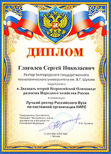 - БГТУ им. В.Г Шухова, как 4-й в рейтинге российских ВУЗов по лучшей организации НИРС.